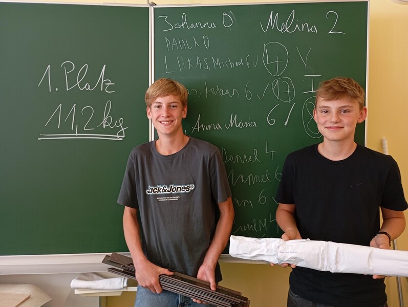 Beim Papierbrücken-Wettbewerb der MINT Klasse 3A überzeugten Fabian Ottino und Elias Schaidreiter mit ihrer besonders stabilen Konstruktion.